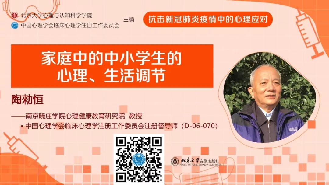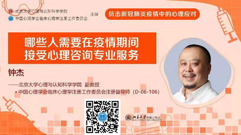 中国心理学会临床心理学注册工作委员会携手北京大学心理与认知科学学院,由钱铭怡教授发起、钟杰副教授负责组织了注册系统的心理学界和咨询行业的专家、学者和资深从业人员录制了一些具有针对性的心理辅导系列公开课,尽可能地希望帮助大家消解负面情绪、补充心理能量、以更积极的态度与新冠肺炎决战到底。
