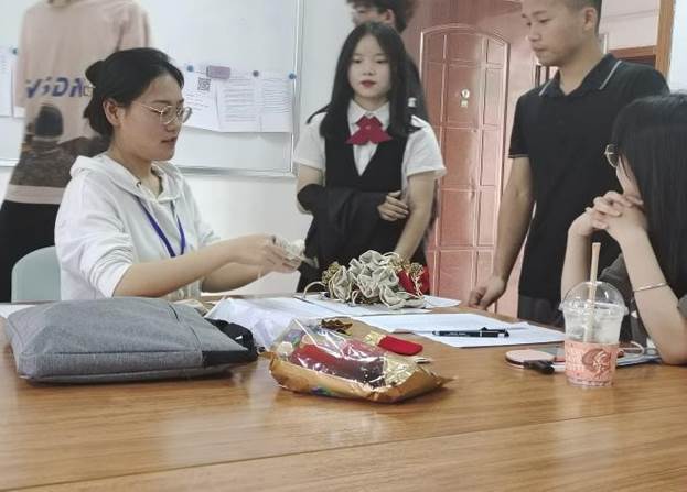 在找出一部分锦囊后,每个小组便派出1-2个人将找到的锦囊带回励志楼006,并完成锦囊里的任务。其中任务的种类也多样化。例如回答历史文学类题目;跟家人说一句我爱你;拍一组表情包;在工作人员面前进行5分钟的自我介绍等。尤其在自我介绍的环节中,每个人都脑洞大开,以幽默独特的方式介绍自己,引得现场的工作人员都忍不住开怀大笑,现场的气氛一下子就变得活跃起来。此环节,充分体现了当代大学生的优秀素养,提现了我校学生的自信,乐观,积极向上。