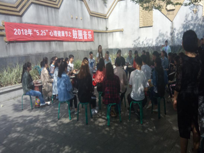 紧接着便是由心理健康部表演的情景剧《都是金钱惹的祸》,在带给大家快乐的同时,也引发了大家的深思,随后,大家在何璇老师的带领下在C教外进行了"鼓圈音乐治疗团体活动",让大家学习了利用自己手中的乐器并根据它的节奏来放松心情,更进一步地加强了与会人员的交流,增进与会人员的友谊。本次活动在合影留念中圆满结束。