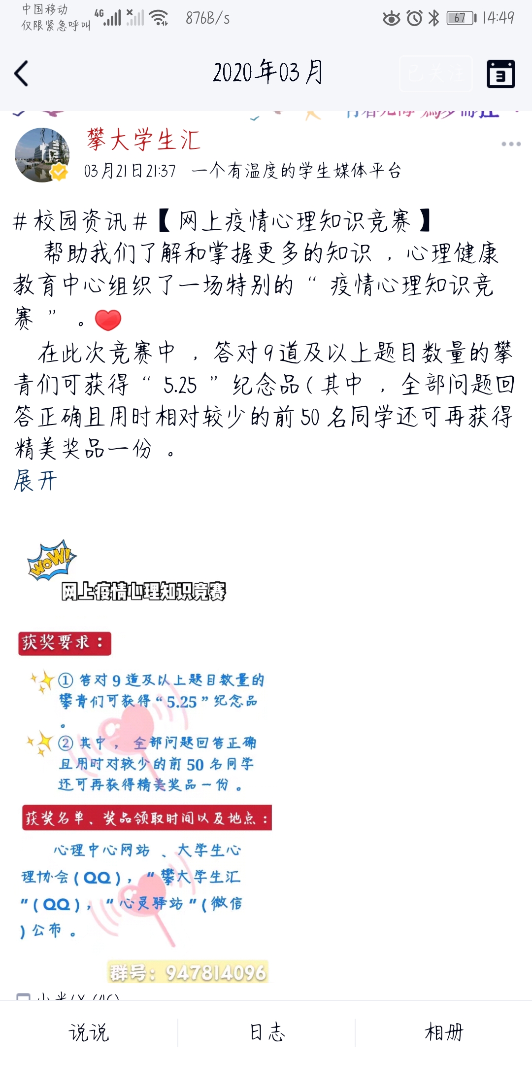 为了让同学们关注自己的心理健康,获得更多的心理知识,由心理健康教育中心主办的“5.25”心理健康节系列活动陆续开展,让我们一起来简单回顾一下吧!