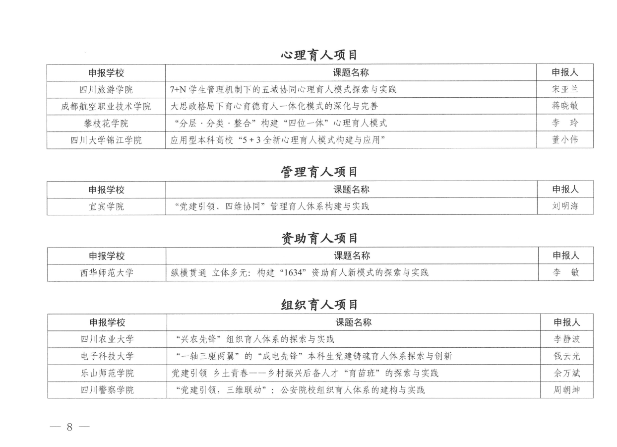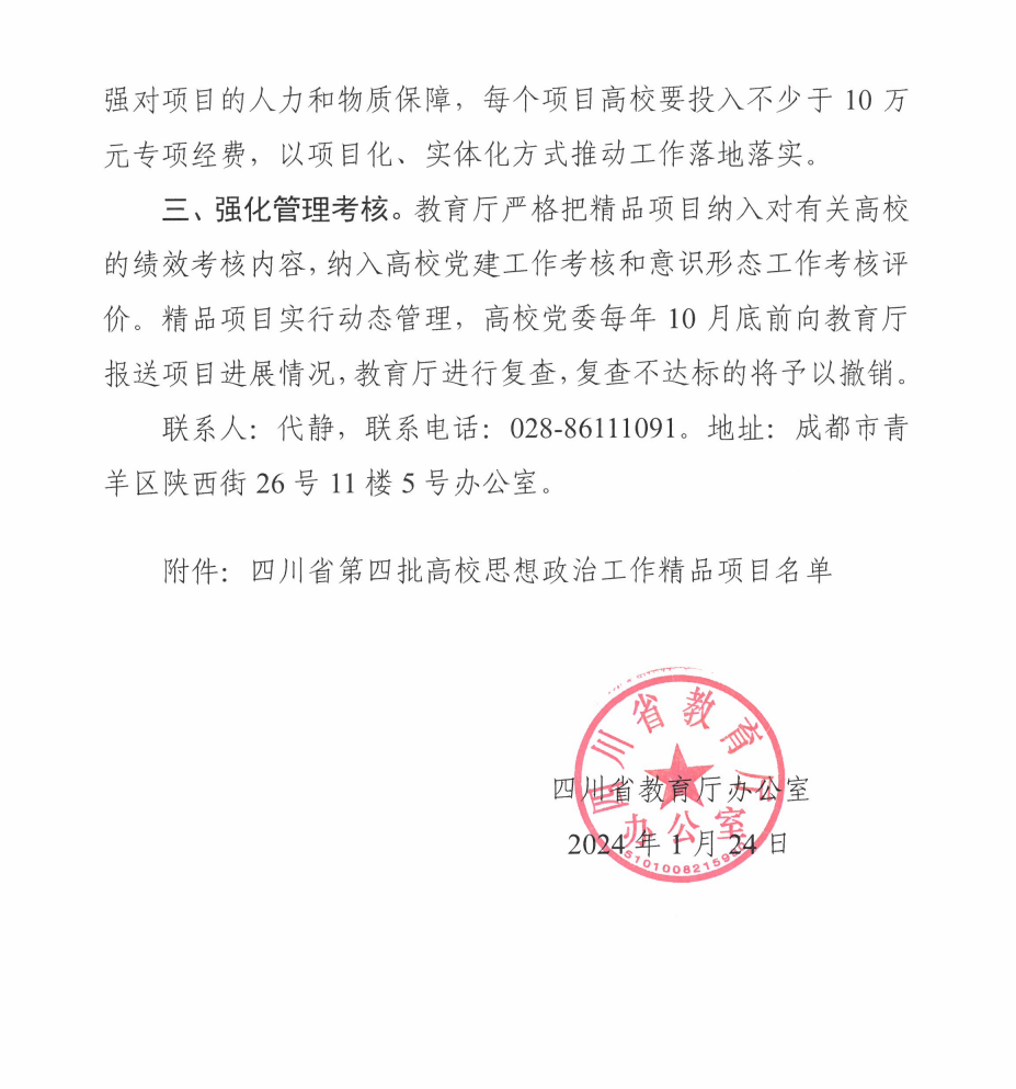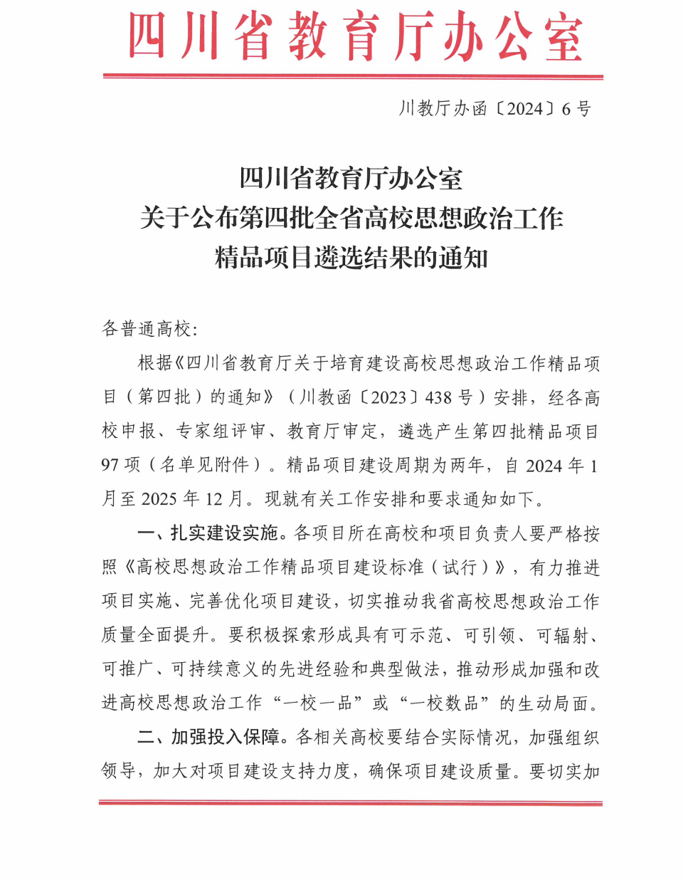 攀枝花学院的《“分层•分类•整合”构建“四位一体”心理育人模式》获批2024年四川省思想政治工作精品项目。