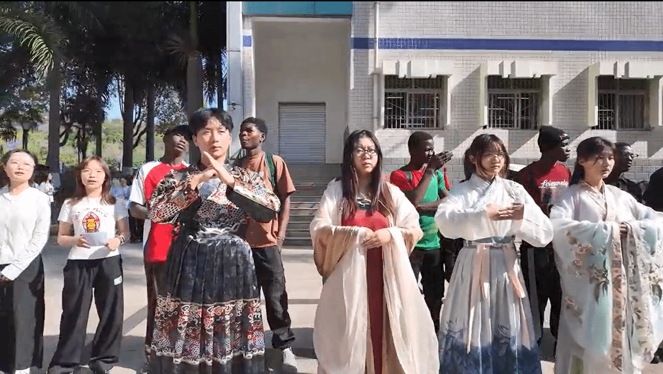 《青花瓷》国风悠扬,汉服与民乐相映,留学生共同参与,尽显传统文化韵味与青春温润力量。《我和我的祖国》师生同唱,环绕式合唱点燃家国情怀,现场温情满满、凝聚力十足。《人间共鸣》走进寝室区,以温柔清唱贴近日常,传递关爱自我、向阳而生的心理正能量。